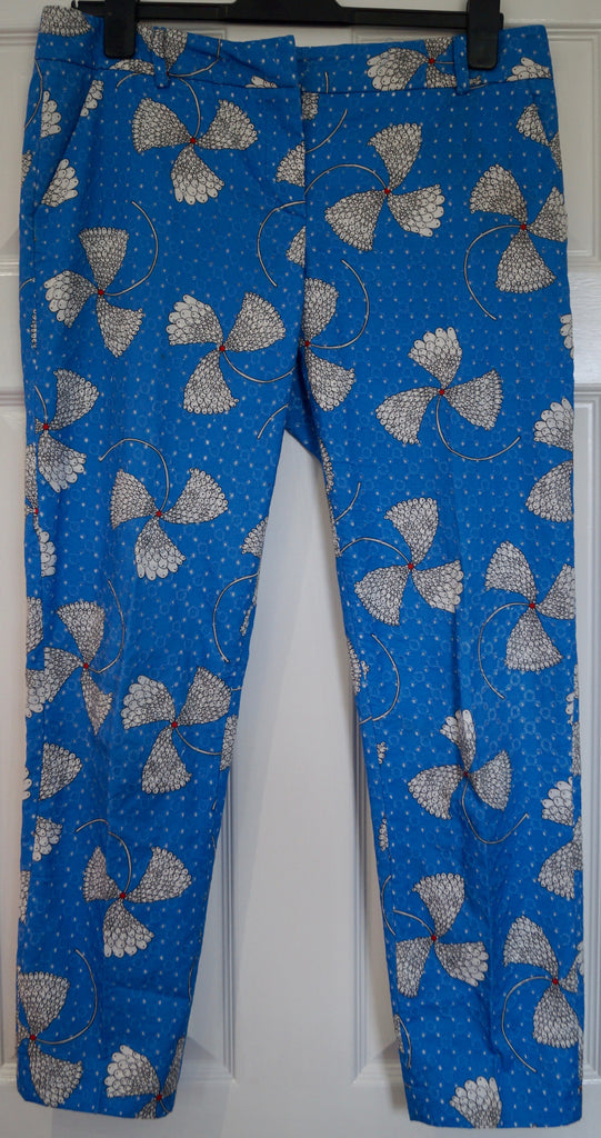 PAUL & JOE Royal Blue Cotton Floral Print Tapered Capri Crop Trousers Pants UK14