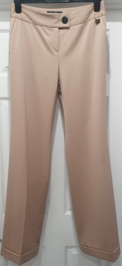 SALVATORE FERRAGAMO Beige Wool Stretch Wide Leg Formal Pants Trousers UK12
