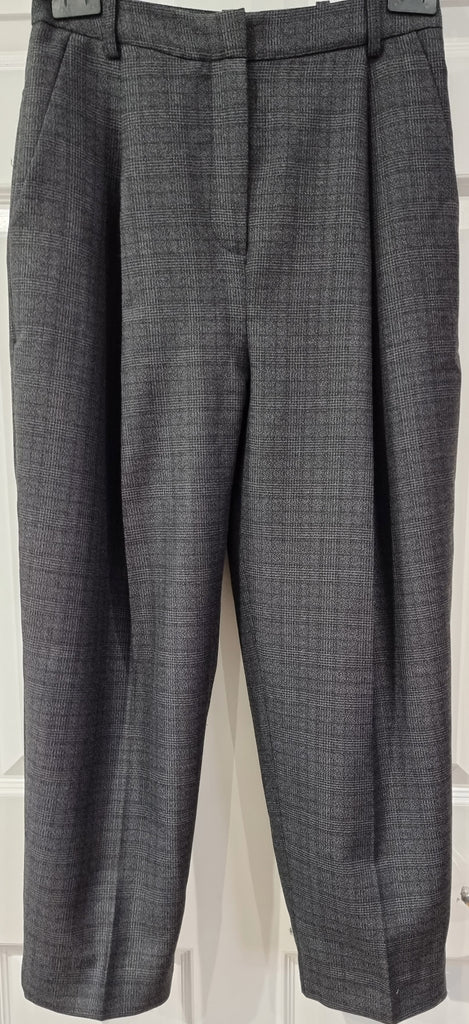 TOPSHOP BOUTIQUE Grey Wool Grey Check Tapered Crop Trousers Pants UK8 BNWT