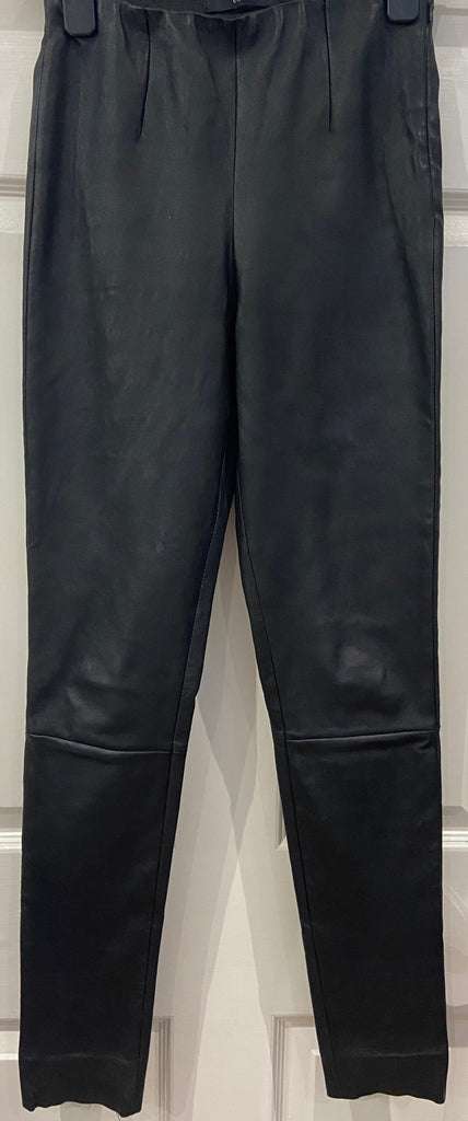 UTERQUE Women's Black Genuine Leather Skinny Slim Fit Leggings Trousers XS 24