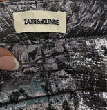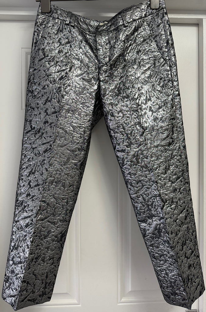 ZADIG & VOLTAIRE Silver Metallic Sheen Textured Crop Capri Trousers Pants 38 M