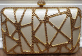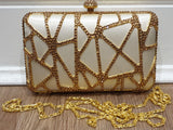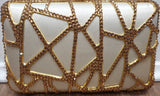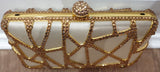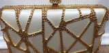 Designer Cream Satin Gold Crystal Embellished Evening Clutch Shoulder Bag Purse