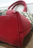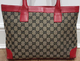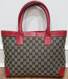 GUCCI Beige GG Monogram Canvas Red Leather Trim & Dual Handle Tote Shopper Bag