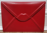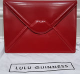 • LULU GUINNESS Red Shined Leather CATHERINE Large Lips Envelope Clutch Bag
