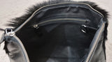 SHERENE MELINDA LONDON Black Leather & Springbok Hair Zip Fasten Clutch Bag
