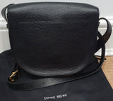 SOPHIE HULME LONDON Black Textured Leather Gold Tone Trim Shoulder Saddle Bag