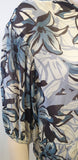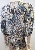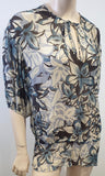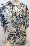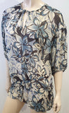 VINCE Cream Navy Black Silk Floral Print Tie Neck 3/4 Sleeve Sheer Tunic Blouse