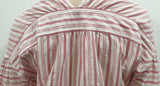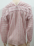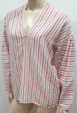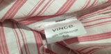 VINCE White Pink Red Striped 100% Cotton V Neck Long Sleeve Tunic Blouse Shirt S