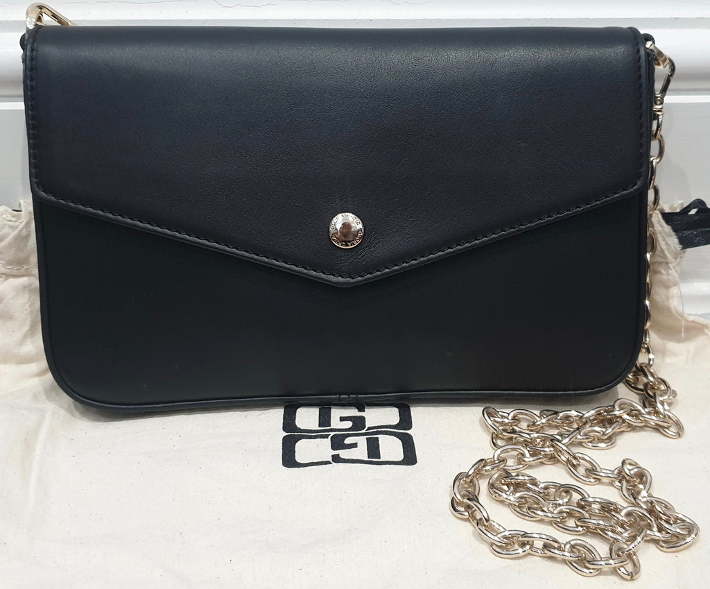 GLORIA ORTIZ Black Leather Detachable Metallic Chain Shoulder Strap Clutch Bag