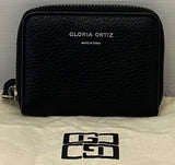 GLORIA ORTIZ Black Pebbled Leather Zip Fastened Coin & Card Slot Purse Wallet