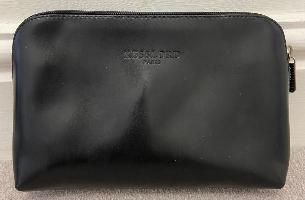 KESSLORD PARIS Made In France Black Matte Sheen Leather Zipper Clutch Purse Bag
