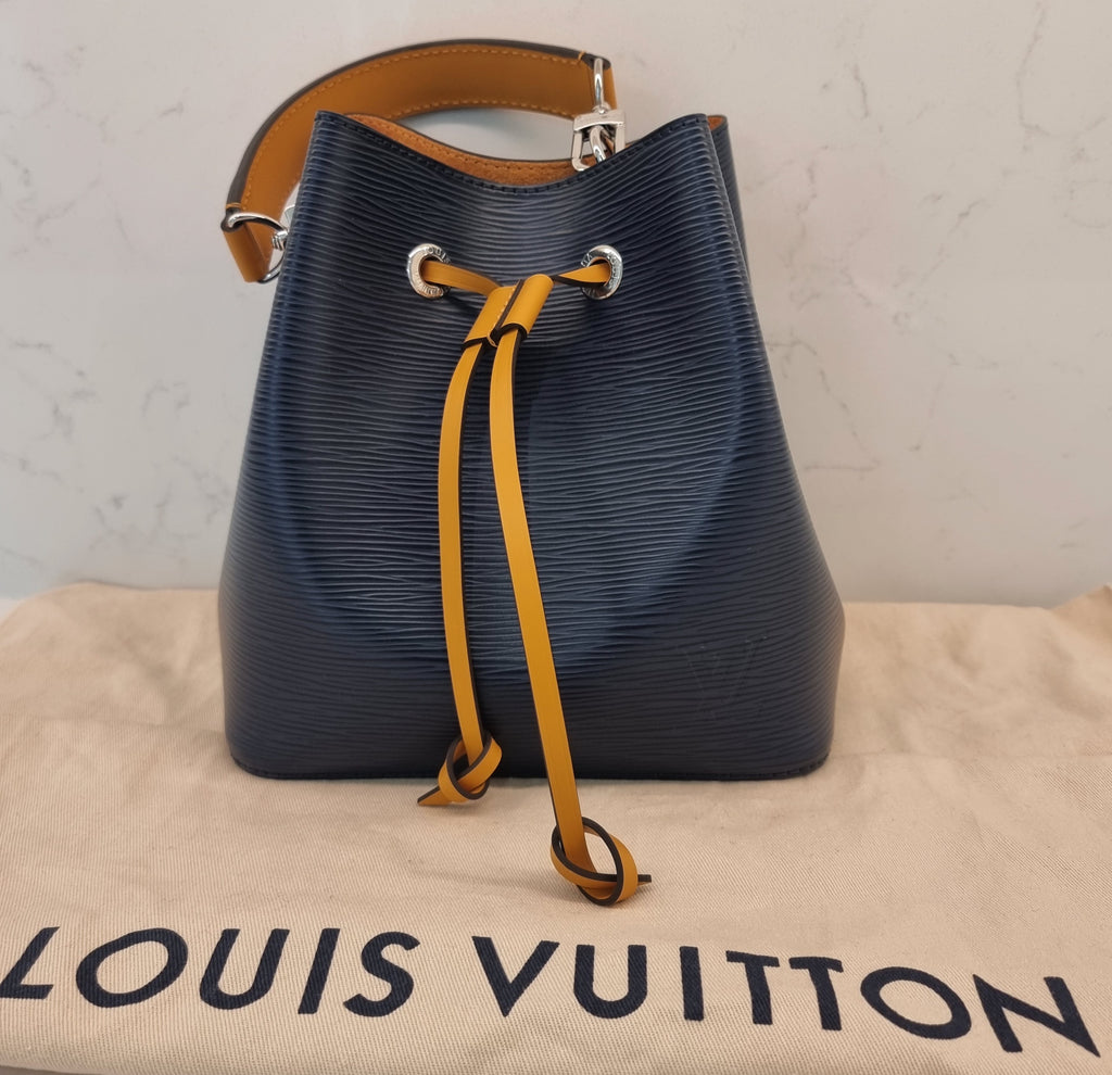 LOUIS VUITTON Indigo Blue & Safran Yellow Epi NeoNoe Leather Bucket Bag - NEW!