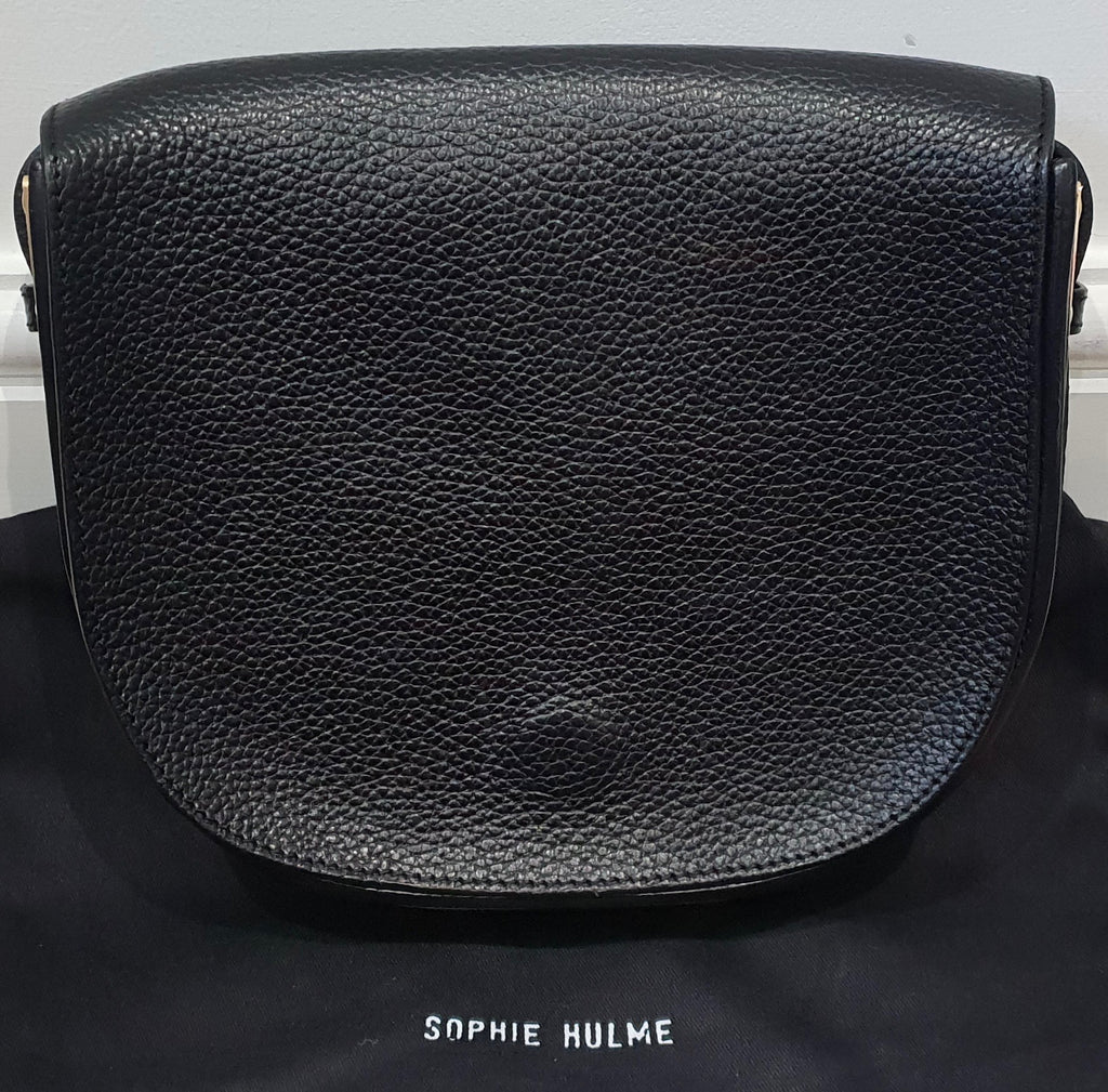 SOPHIE HULME LONDON Black Textured Leather Gold Tone Trim Shoulder Saddle Bag