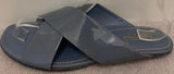 YSL YVES SAINT LAURENT Blue/Grey Leather Patent Strappy Flat Sandals Shoes UK6