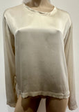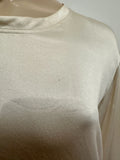 YVES SAINT LAURENT RIVE GAUCHE Cream 100% Silk Sheen Long Sleeve Blouse Top M