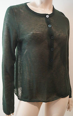 ZADIG & VOLTAIRE Olive Green Sheer Wool Blend Sheer Round Neck Cardigan Top M