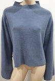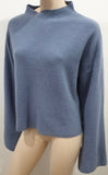 CHLOE Pale Powder Blue Wool Ribbed Button Flare Cuff Jumper Sweater Top M/L
