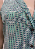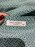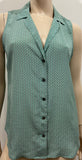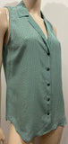 EQUIPMENT FEMME Green Multi Colour Silk Collared V-Neck Sleeveless Blouse Shirt