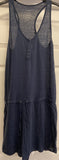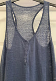 FINE COLLECTION Navy Blue 100% Linen Round Neck Sleeveless Romper Playsuit S
