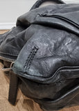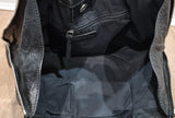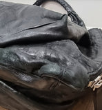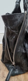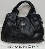 GIVENCHY Black Wrinkled Leather Branded Silver Side Zipper Expandable Tote Bag
