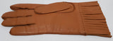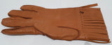 PRADA Made In Italy Women's Tan Camel Leather Silk Lined Fringed Gloves Sz:7.5