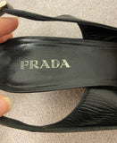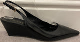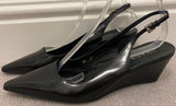 PRADA Women's Black Shined Leather Pointed Toe Slingback Wedge Shoes EU39 UK6