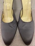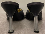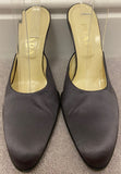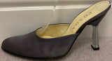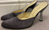 PRADA Women's Grey Satin Round Toe Perspex Stiletto Heel Mules Shoes 39.5 UK6.5