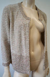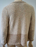 STEFAN GREEN Beige Cream Pink Cotton Blend Textured Knit Open Front Cardigan 3;