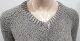 TWIN SET SIMON BARBIERI Grey Chunky Knit Silver Metallic Heart Cardigan 12 BNWT