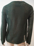 ZADIG & VOLTAIRE Olive Green Sheer Wool Blend Sheer Round Neck Cardigan Top M